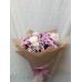 Нежен букет с рози, алстромерия и еустома аранжиран с листа аралия