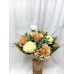 Букет комбинация от рози и спрей рози нежно обгърнати с мрежа.