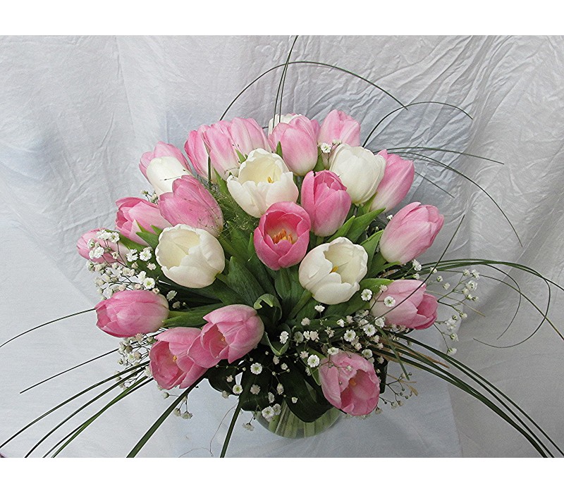 Букет от 19 бр. прекрасни бели и розови лалета.