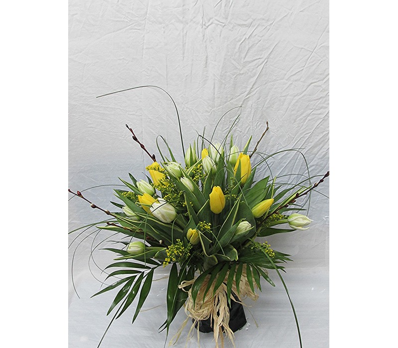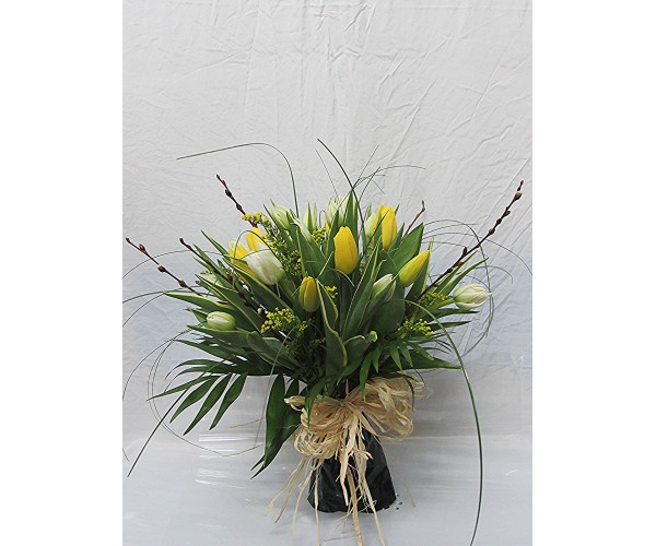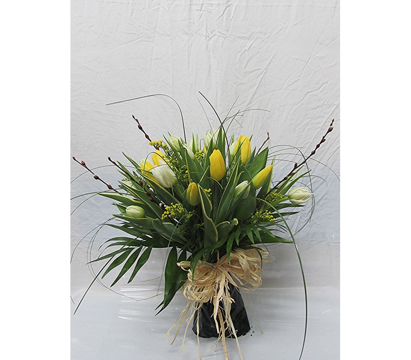 Букет с 29 бр. бели и жълти лалета, без опаковка