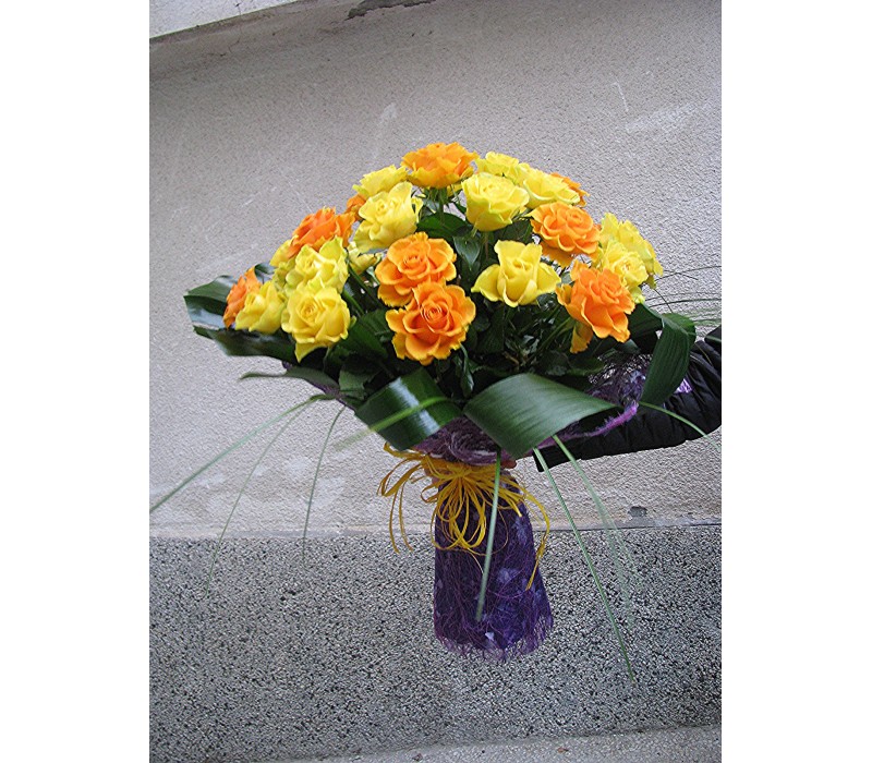 Букет с З1 бр. жълти и оранжеви рози без опаковка