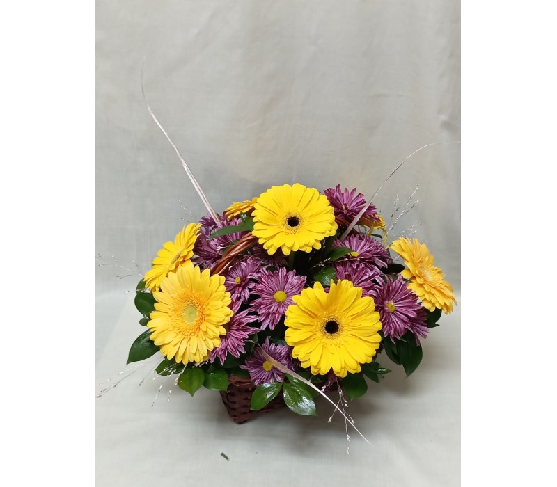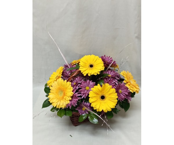 Кошница с 7 бр. гербери и 3 бр. хризантема.