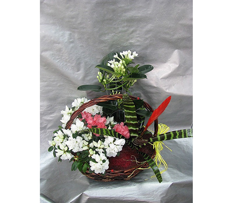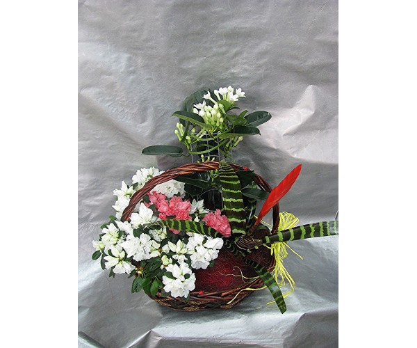 Композирани в кошница – Азалия, Стефанотис и Вризея.