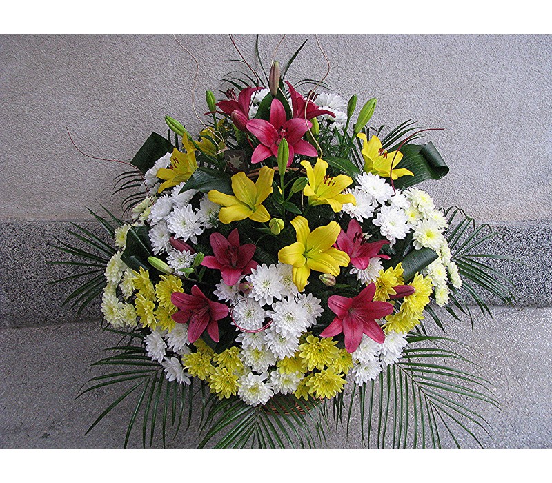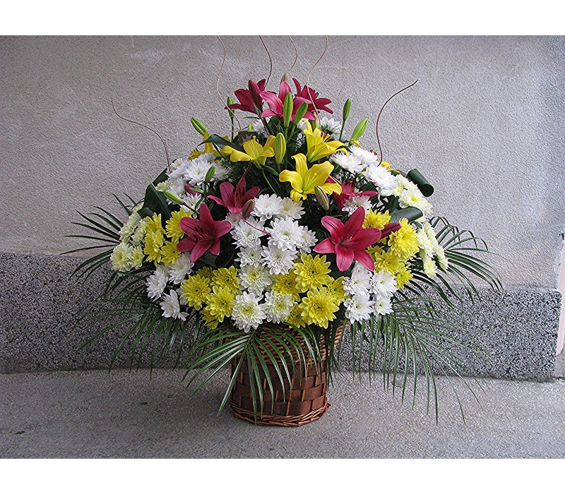 Кошница с 6 бр. лилиум 25 бр. хризантеми.