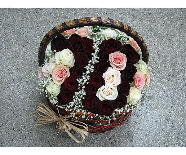 Кошница с 51 бр. пъстроцветни рози