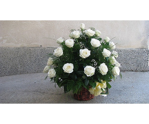 Двадесет и три бели и червени рози аранжирани в кутия сърце.