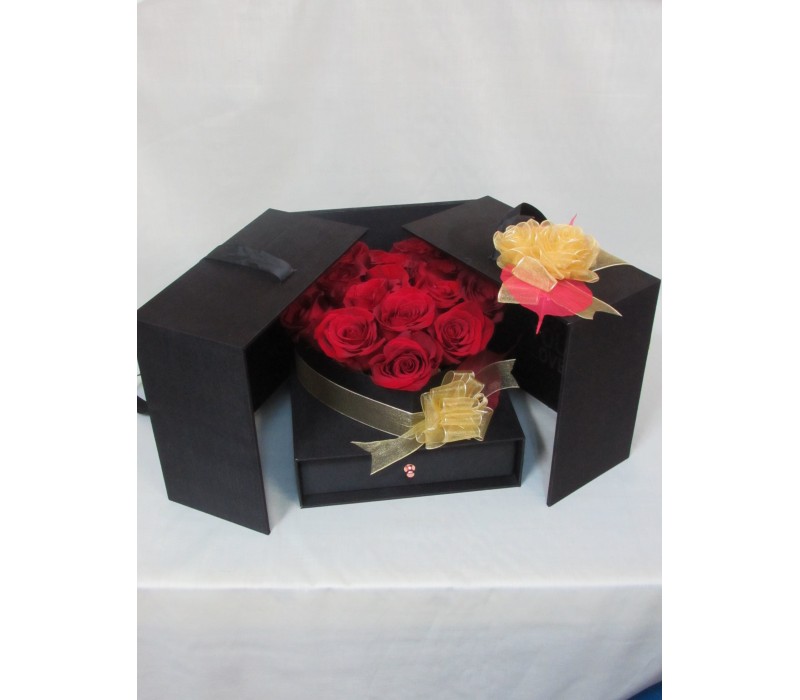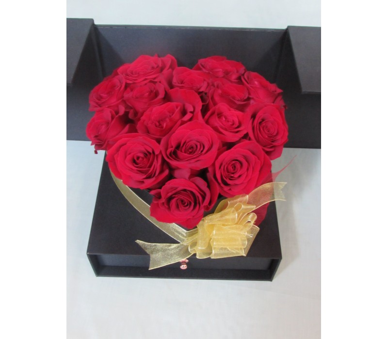 Девет броя червени рози ,аранжирани в стилна кутия.