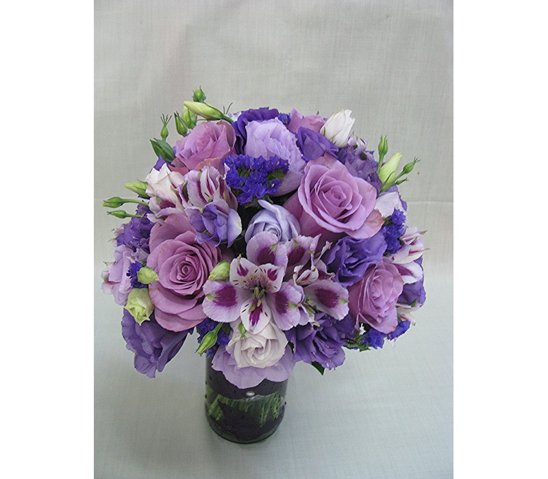 Букет с различни по вид цветя поднесен в елегантна ваза
