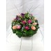Нежен букет с рози, алстромерия и еустома аранжиран с листа аралия