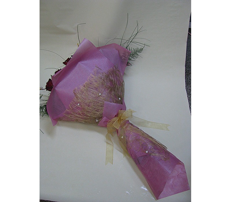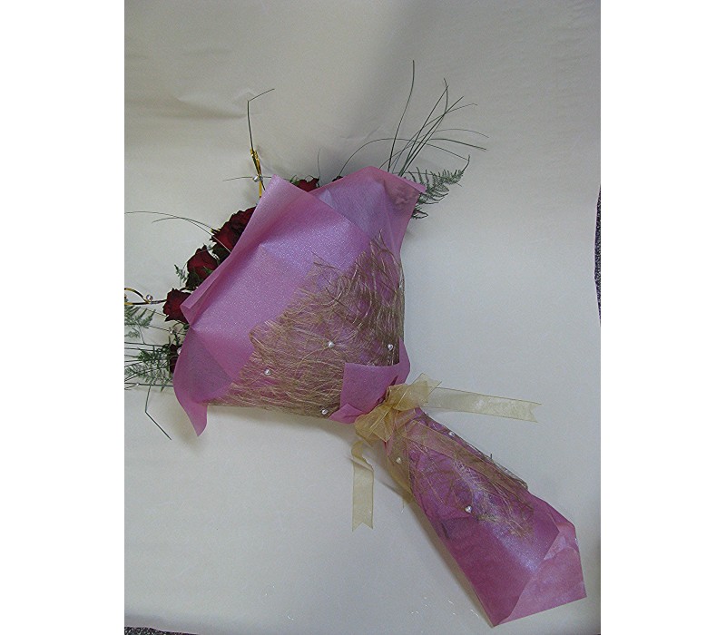 Букет 7 бр рози с гипсофил и зеленина обвити с крафт хартия.