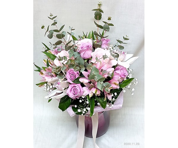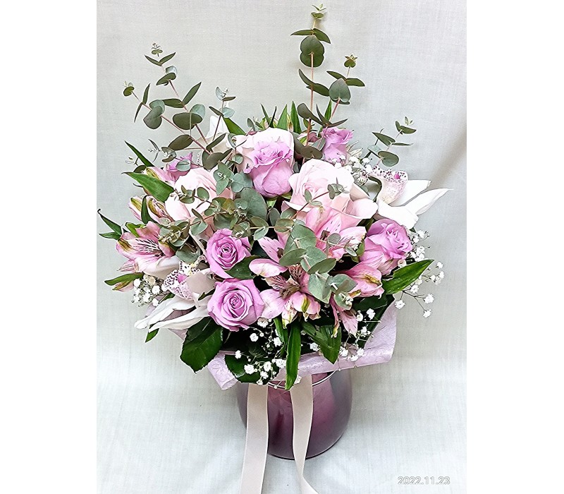Букет с орхидея и рози в нежно розово